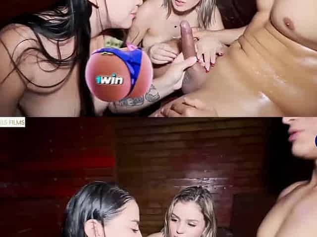 Horny Colombians get banged in the sauna by a good meatpipe in a threesome.
