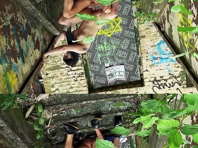 Gothic girl and her boyfriend are fucking in an abandoned building
