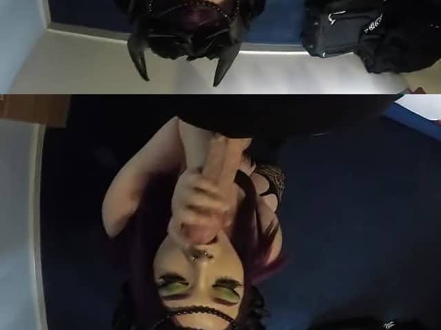 Sexy goth bitch serving out her Master orally & eat his cum pt2 HD