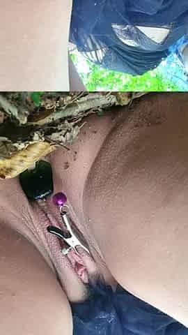 Gothfee Fucks Her Clamped Pussy Outdoors in the Woods