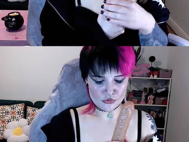 Big-Titted Goth Girl Rides Dildo on Cam