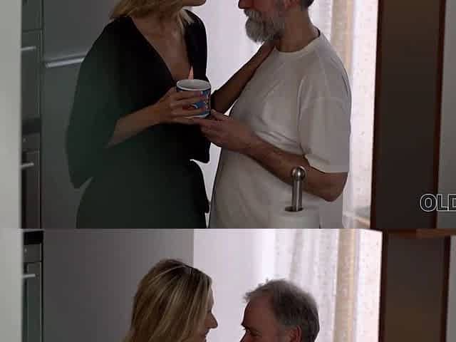 Tender sex is the way blonde and old husband begin their day