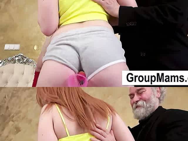 Redhead Dolly Little plays and fucks with grandpa
