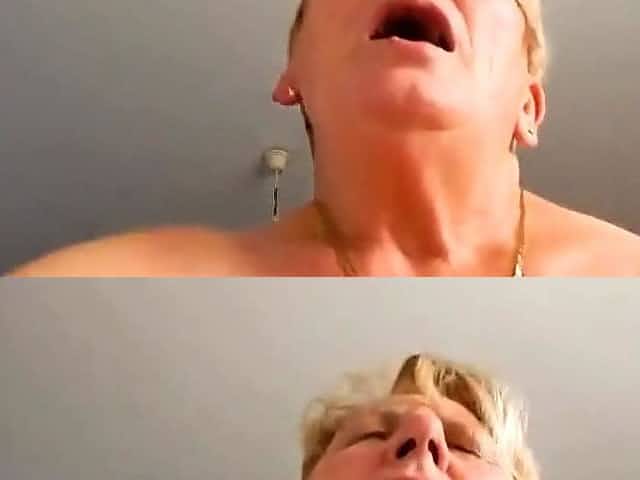 Skinny mature blonde amateur granny stuffs her pussy with a dildo