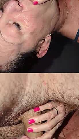 Old lady with saggy tits cums in pussy huge load of fresh cum