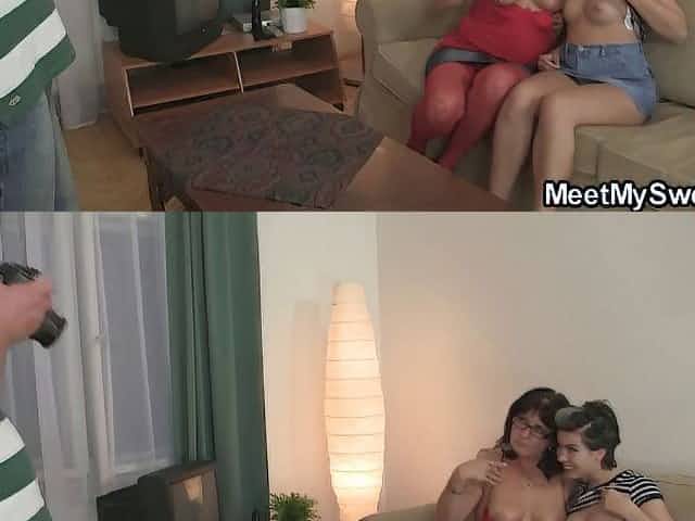 Lesbian granny pleasing her son's GF