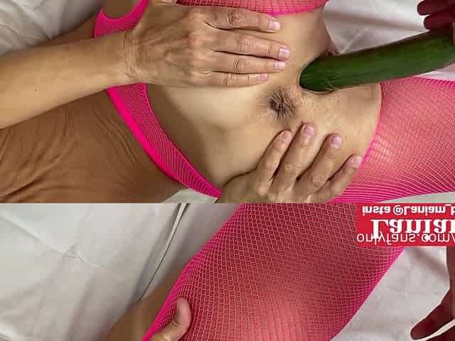 Yielding gilf Julie Whitaker bangs biggest cucumber (part two of two)