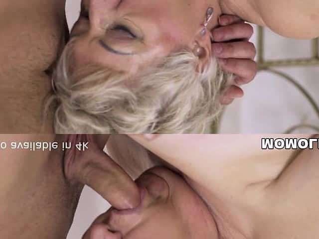 Blonde grandma has her pussy licked and drilled balls deep