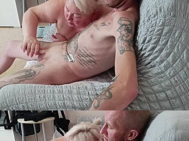 BBW granny fucks a lucky guy on the couch