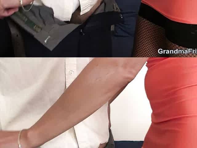 Very old office granny gets used by two men