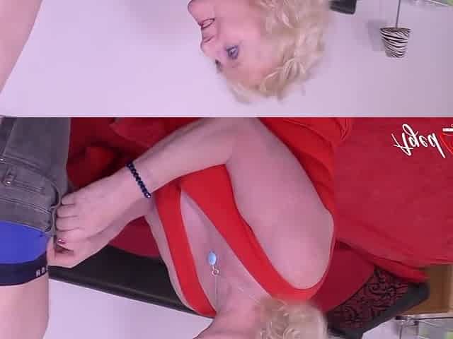 Old blonde granma sucks and rides for work