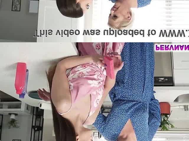 Lesbian step mom girl fooling on the kitchen