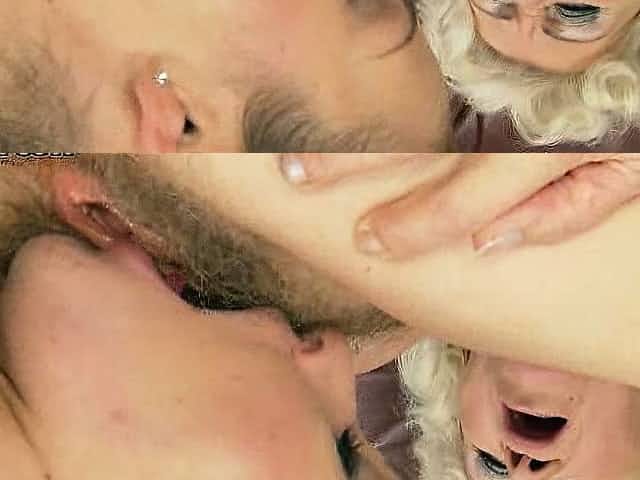 Blonde cutie Lilla eat granny Malyas old hairy pussy and ass