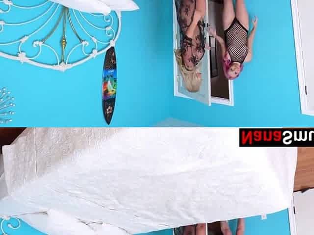 granny plays with her stepdaughter's biggest boobs and licks her nipps