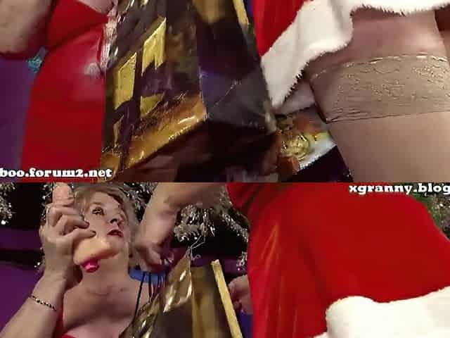 Granny babe rides strapon