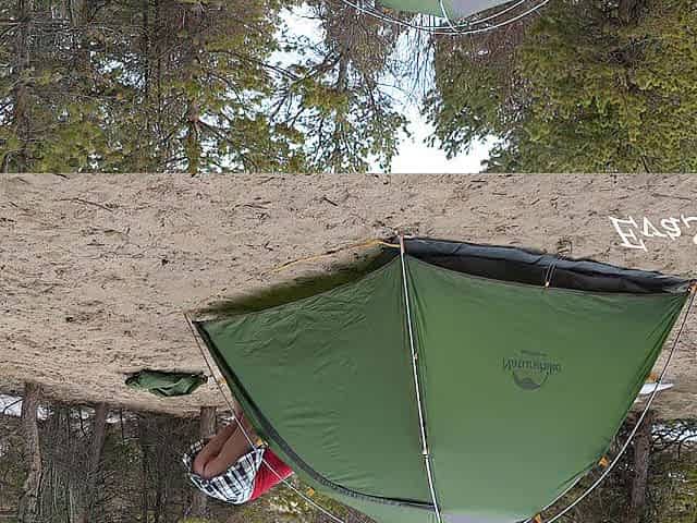 A pretty blond out of pants is assembling a tent. For lovers of peeping