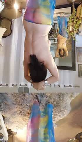"Granny with hairy dancing naked with a scarf"