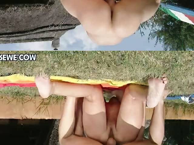Granny on a blanket outdoors fucking