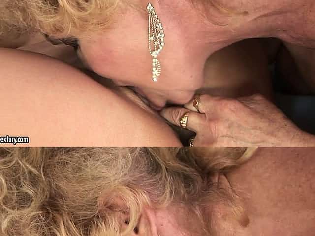 Blond granny gets her wrinkled pussy serviced by a young dyke