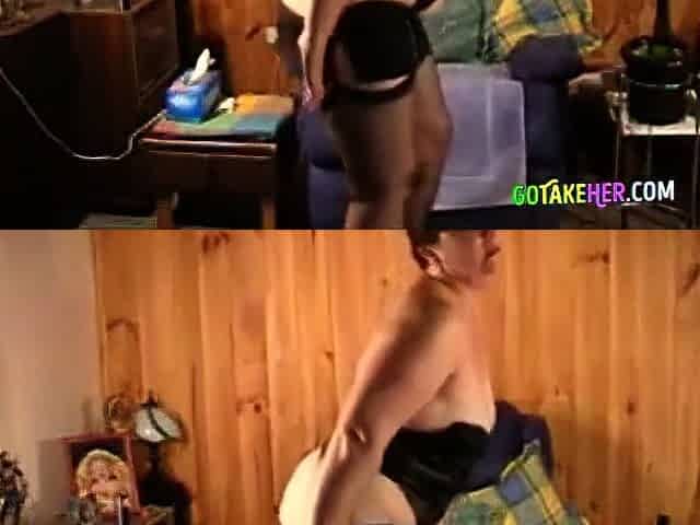 BBW granny with saggy tits boned hard in a doggy position