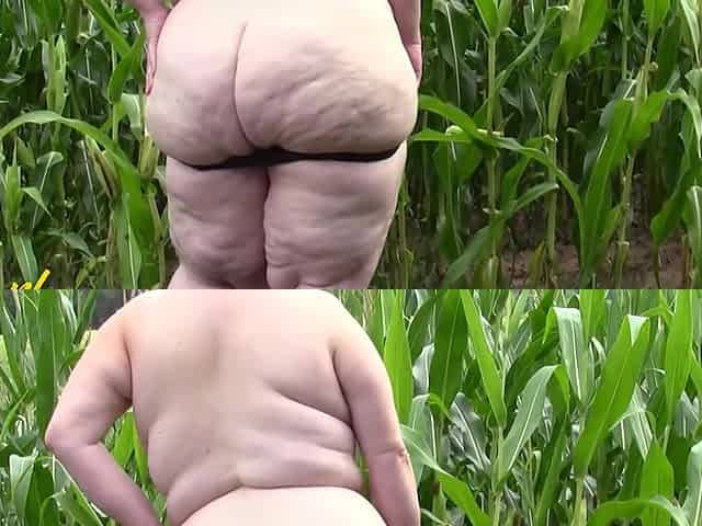 Hairy Mature BBW Tina Plays With Her Huge Ass & Fat Pussy In a Corn Field