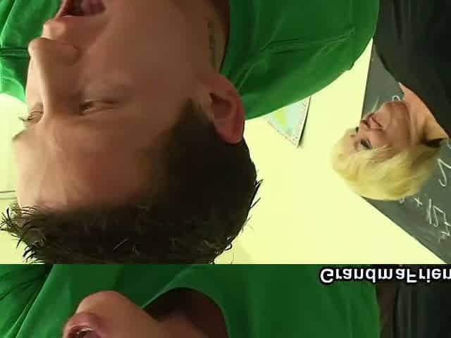 Blonde old teacher takes it from both sides