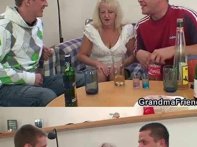 Blonde grandma takes two big cocks at once. Blonde grandma takes two big cocks at once