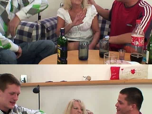 Two guys seduce blonde mature woman