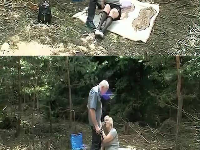 Blonde granny fucked in the woods