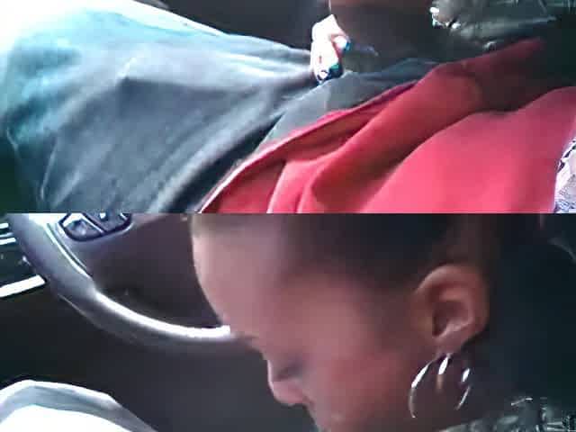 Ebony girlfriend sucks on her boyfriend while he's driving, Gorgeous ebony girlfriend gives great head in this amateur blowjob v