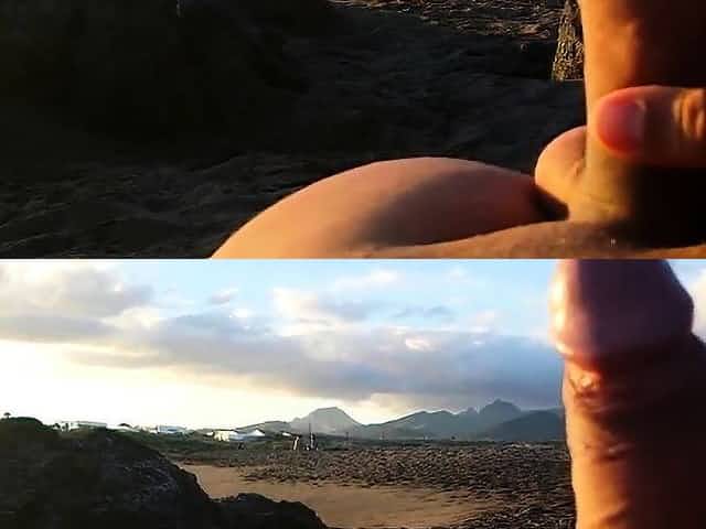 masturbation beach in front two girls with cum