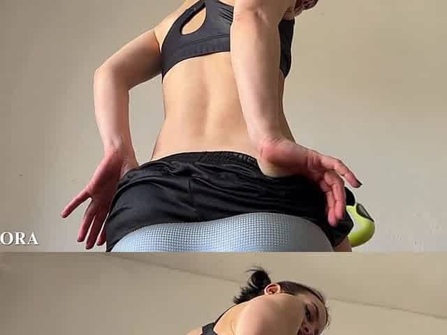 Gal in gym leggings does exercises and then humping a roller until climax