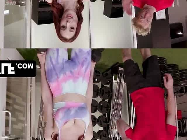 Impressive redhead Lilian Stone is enjoying sex in the gym