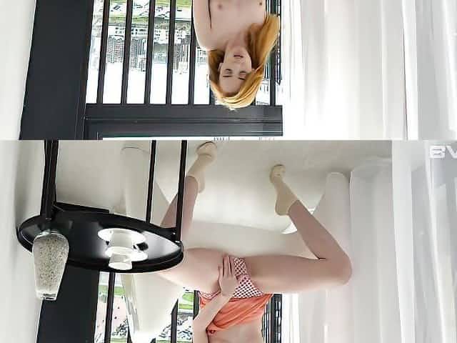 Slim redhead gymnast Ala Starovata widens legs