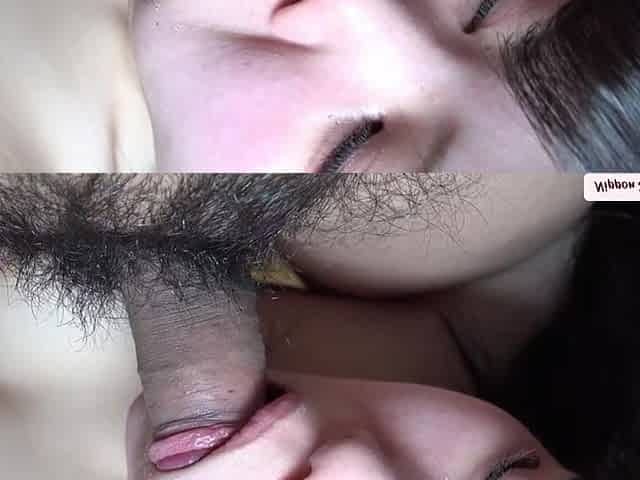 Amateur Couple in Long French Kiss, Blowjob and Cowgirl up Creampie.