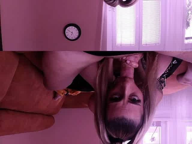 Blonde babe enjoys giving her first deep throat blowjob