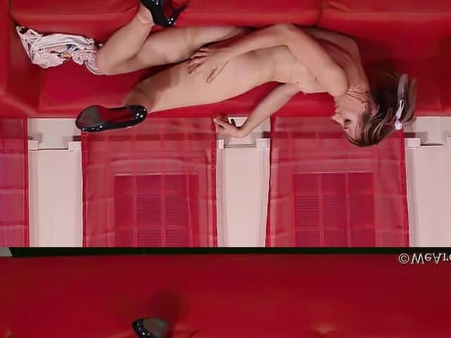 Mahonia lays on couch masturbating
