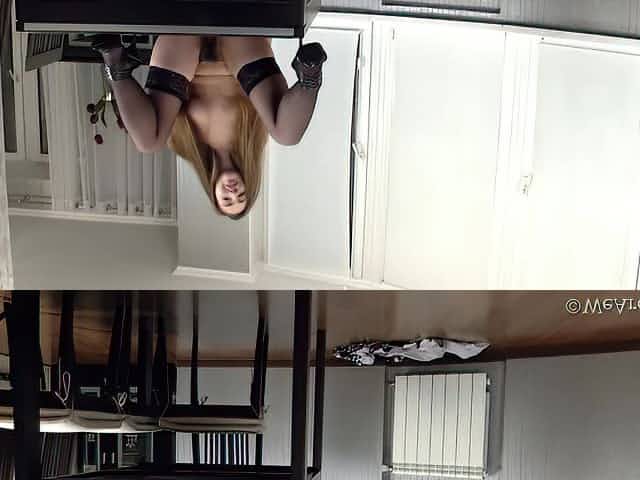 Cherry Bloom masturbates on her wooden table