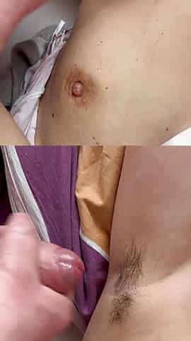"Handjob with cumshot on hairy armpits"