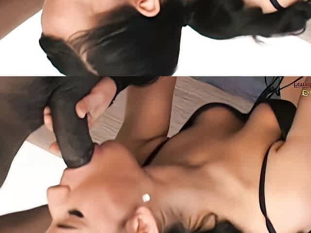 Hot Asian model gets a hard fuck after giving a blowjob, This Asian hottie is in for a group fuck. She is sexy in her black ling