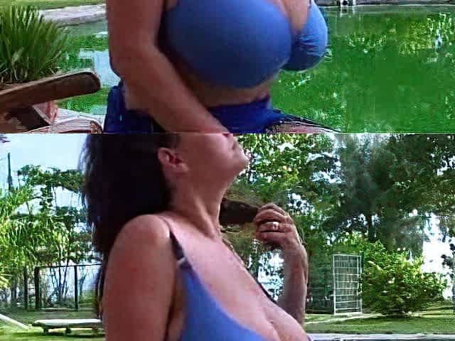 Blonde Chikita shows off her big boobs and bush