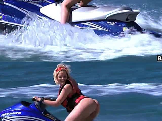 Swimsuit hairy pussy and cumming