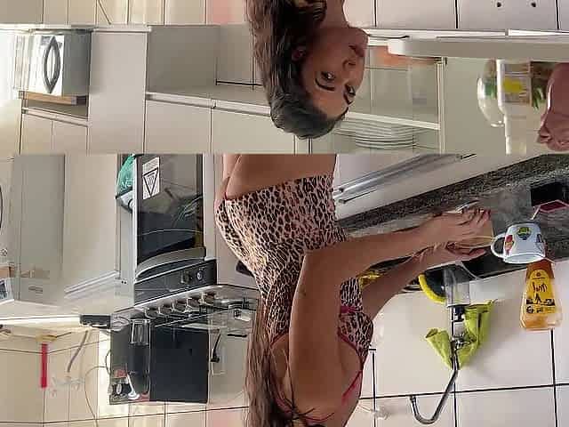 Sexy and Naughty Wife Trying on Clothes That She Cuts.