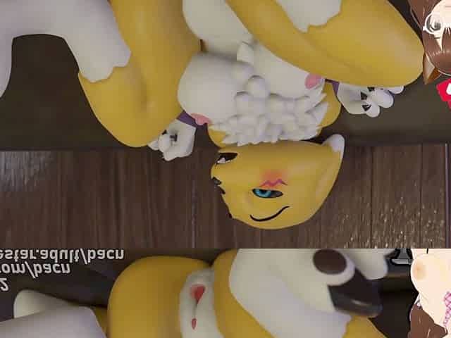 Guilmon dominates Renamon and fills her up in this furry animation featuring Jazziuu