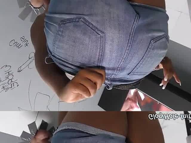 Sweet big tits ebony babe wanks cock plays with his dick