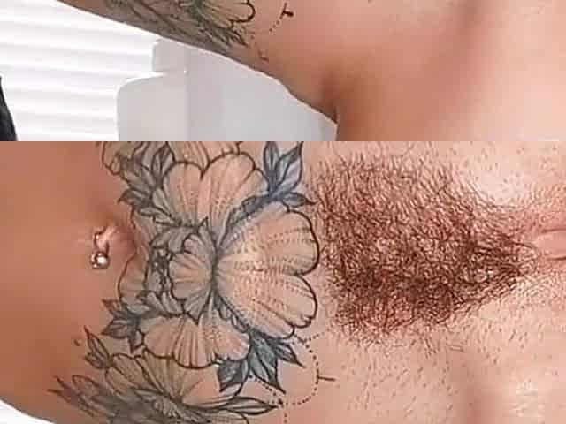 Showing her hairy cunt and ass for you