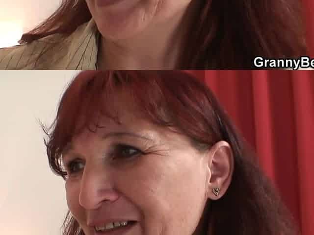 Brunette Hair Grandma In Underware Gets 2 Dicks