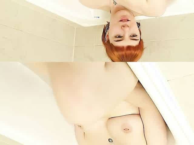 Angelic Asian lesbian with natural tits masturbating passionately in the bathroom