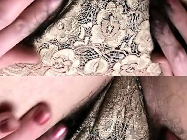 Hairy mature amateur in panties spreads her pussy