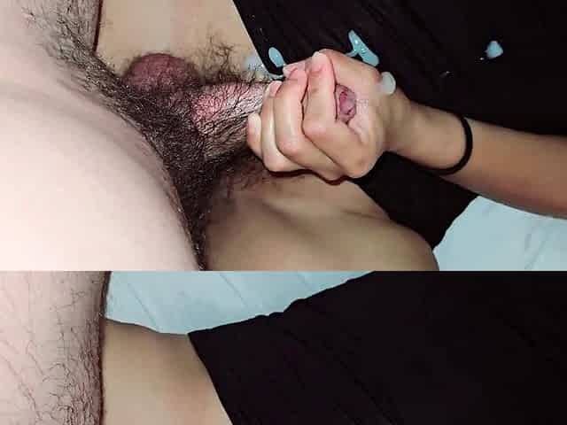 Amateur wife gives me a handjob to climax in some steamy home sex